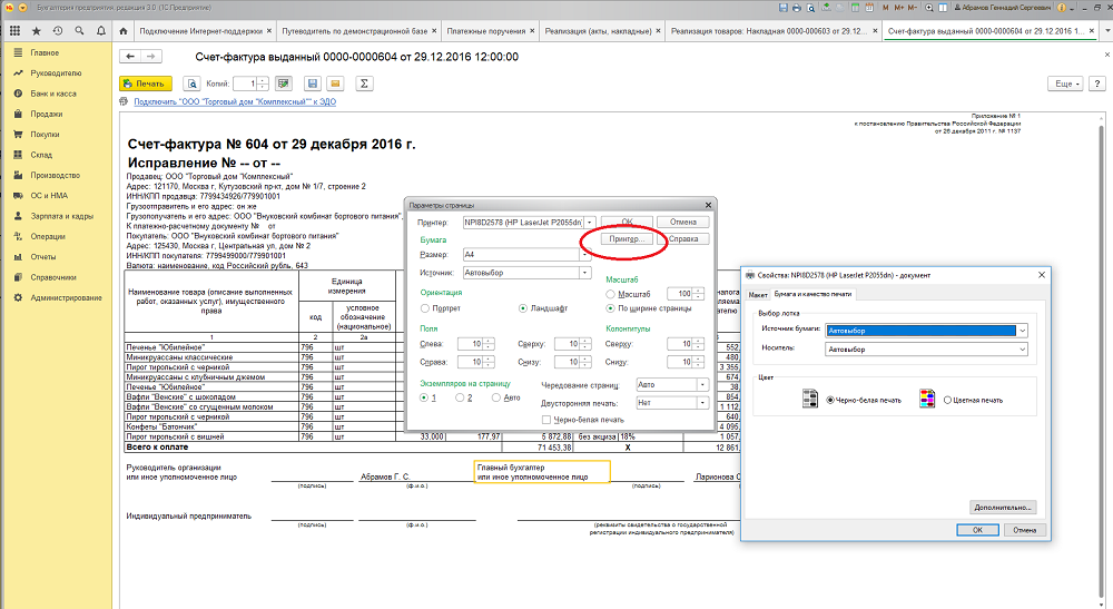 Все документы, создаваемые в 1С, можно распечатать. Чтобы настроить параметры печати в 1С, вам потребуется создать новый документ. Достаточно воспользоваться стандартной панелью инструментов или меню “Файл”. В меню “Файл” в новом документе выберите пункт “Печать”, или воспользуйтесь командой с клавиатуры Ctrl+P. В появившемся окне вы увидите все доступные для использования устройства. Выберите нужное устройство.